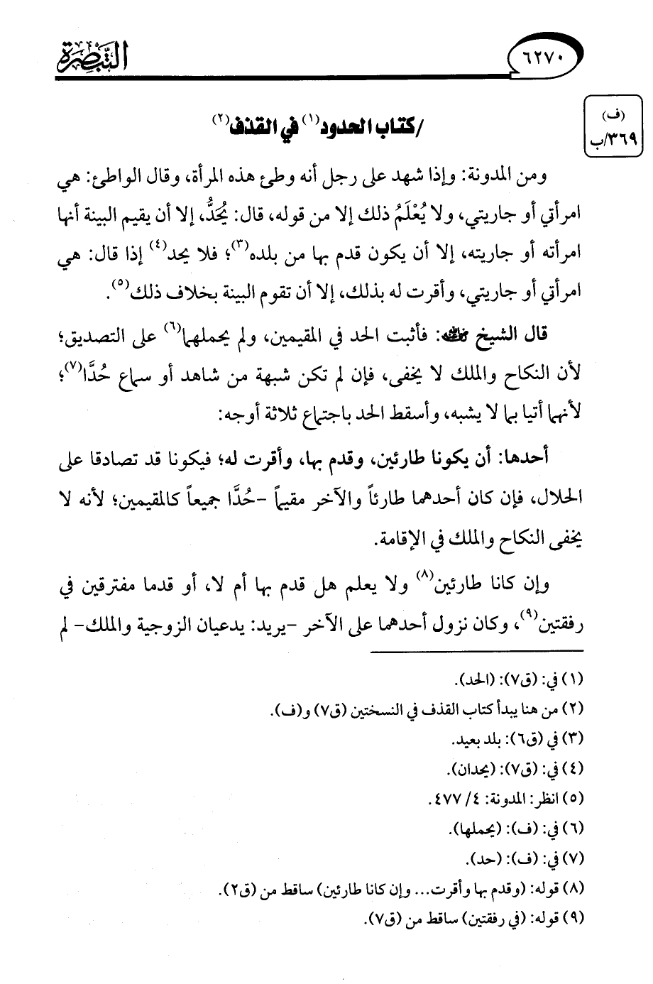 (¬2) من هنا يبدأ كتاب القذف في النسختين (ق 7) و (ف).