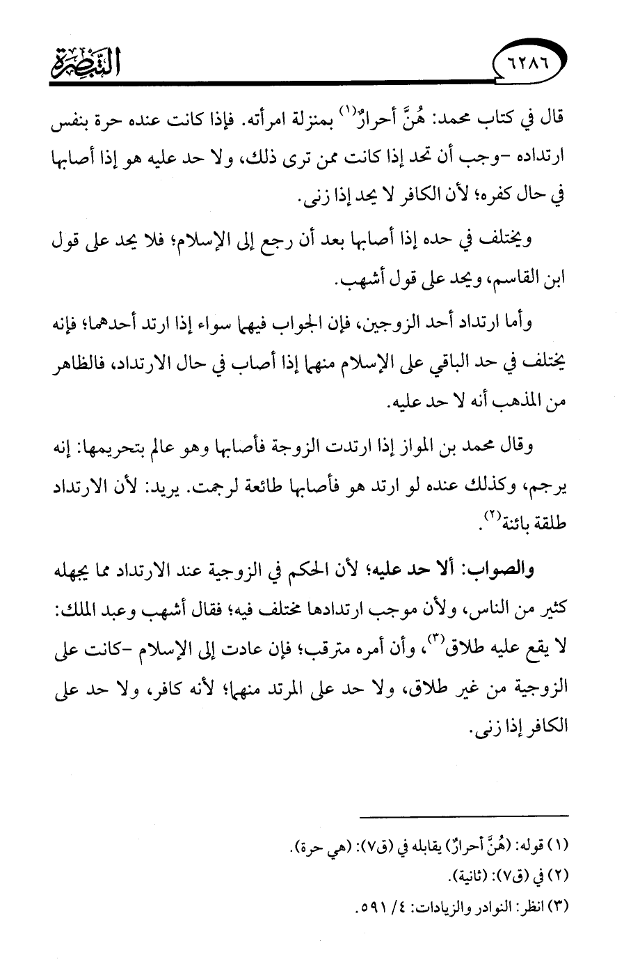 (¬3) انظر: النوادر والزيادات: 4/ 591.