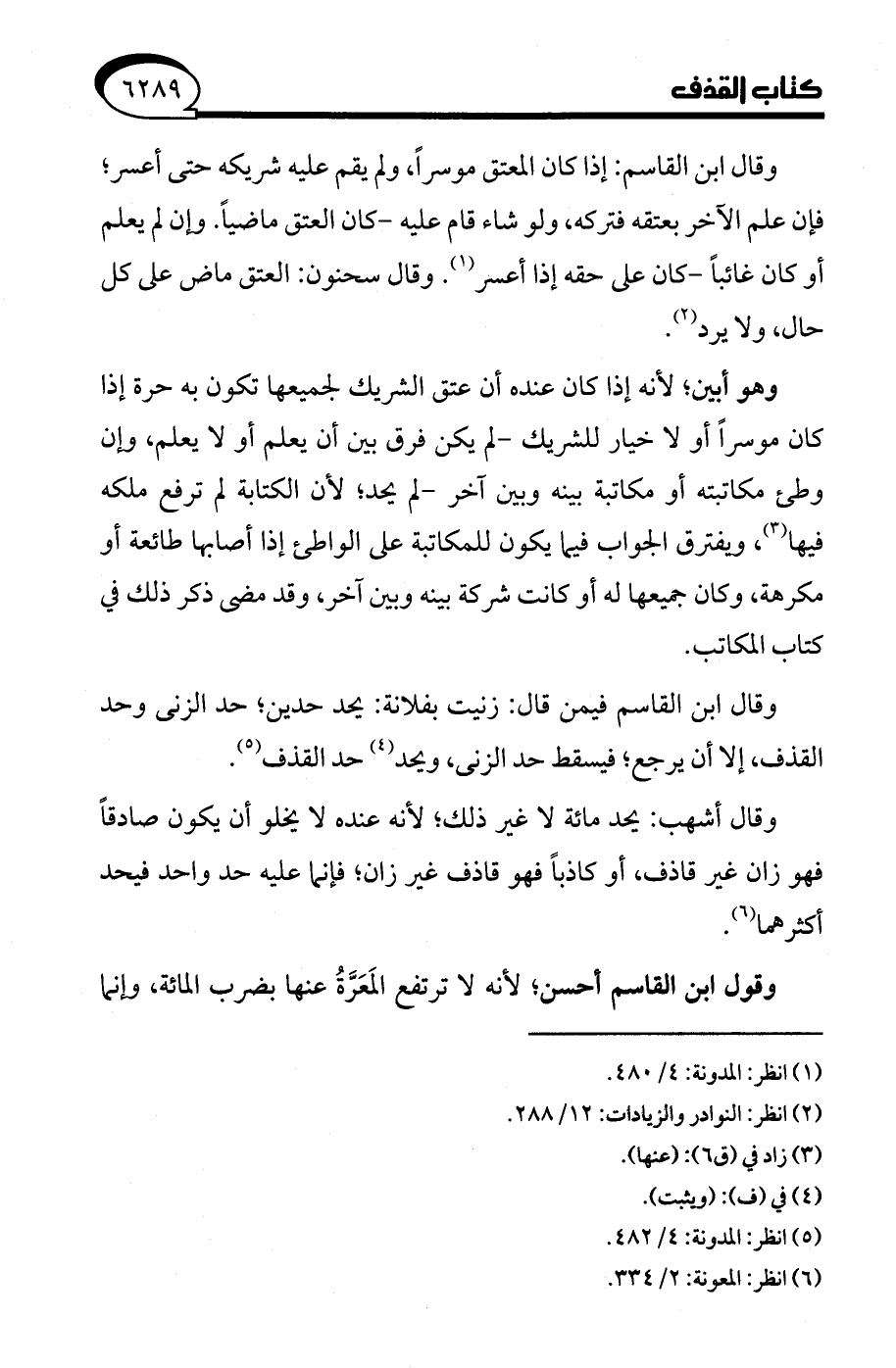 (¬5) انظر: المدونة: 4/ 482.