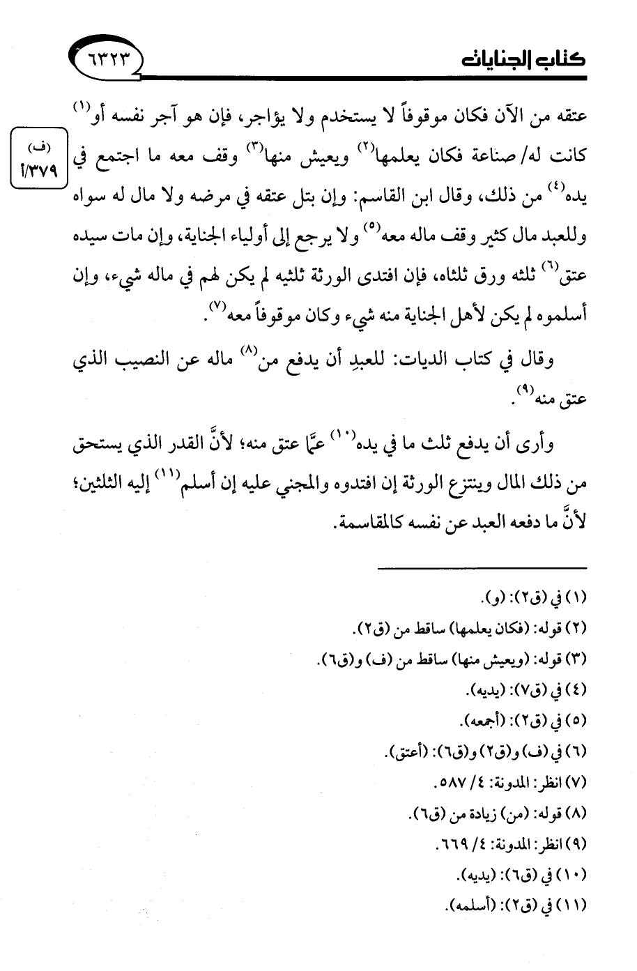 (¬7) انظر: المدونة: 4/ 587.