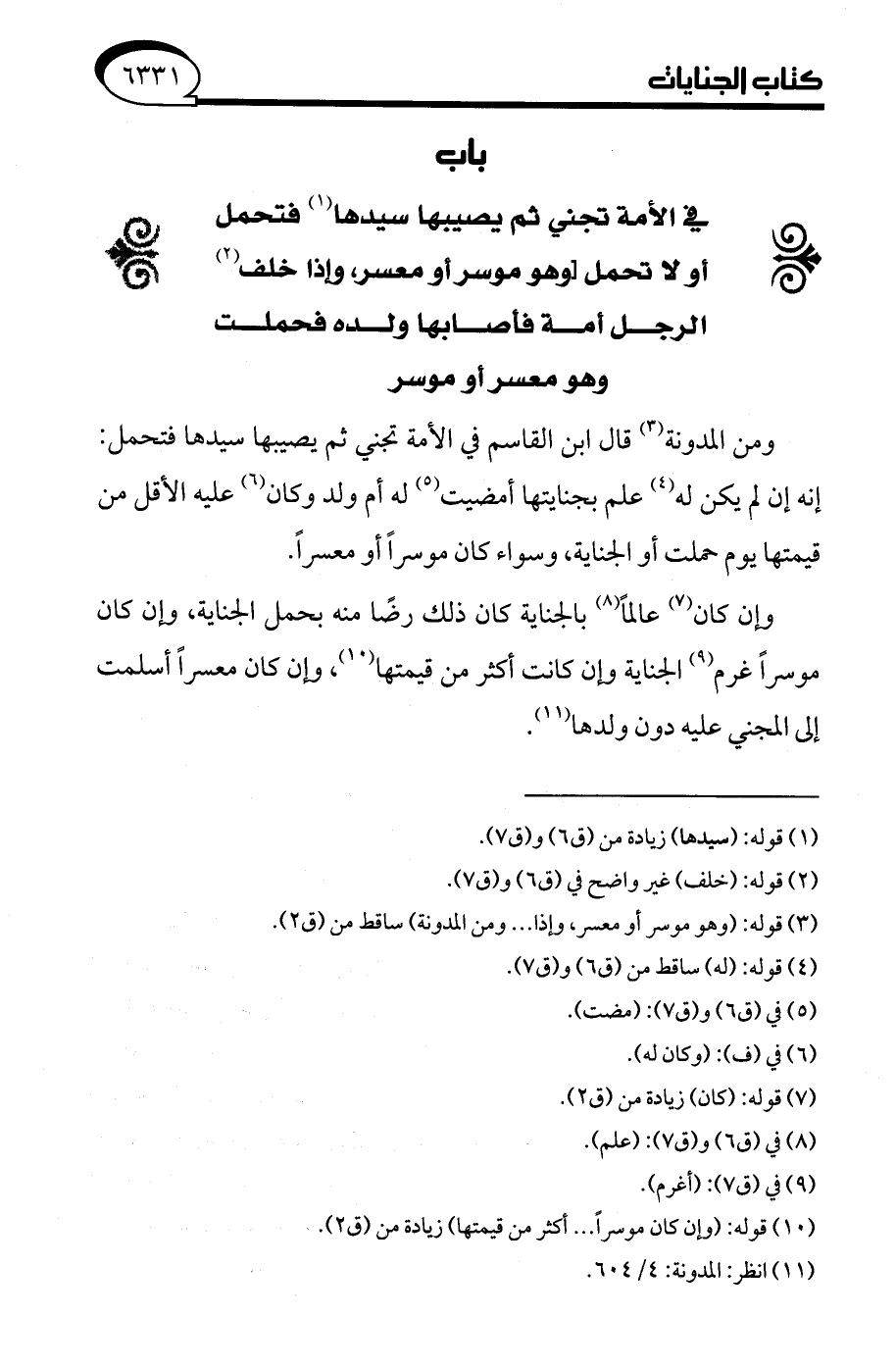 (¬11) انظر: المدونة: 4/ 604.