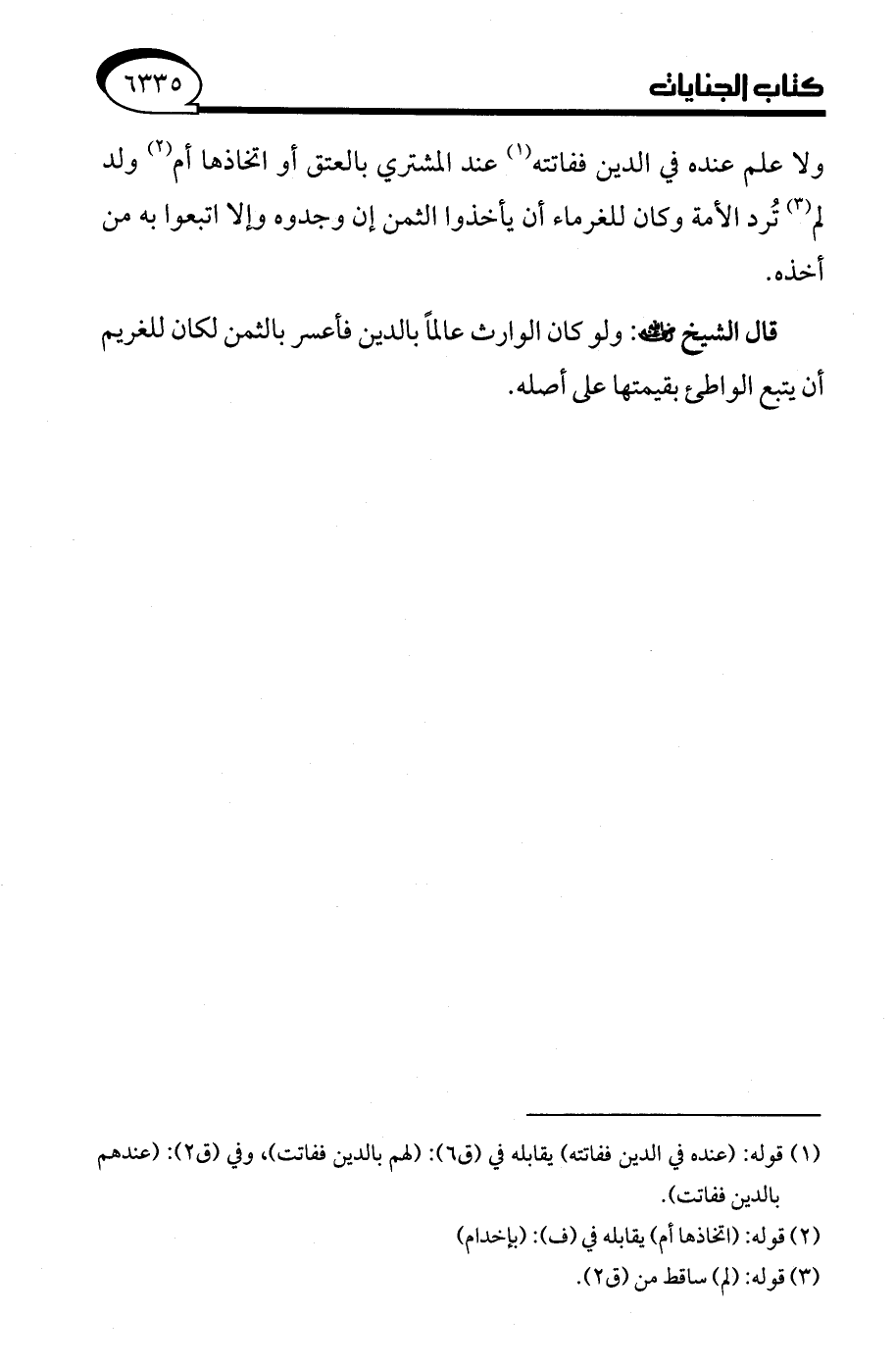 (¬1) قوله: (عنده في الدين ففاتته) يقابله في (ق 6): (لهم بالدين ففاتت)، وفي (ق 2): (عندهم بالدين ففاتت).
