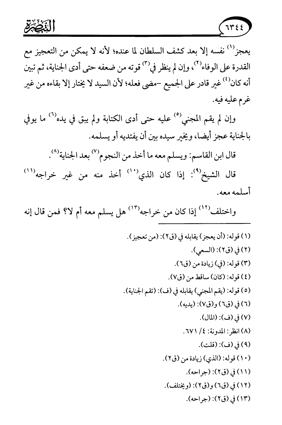 قال ابن القاسم: ويسلم معه ما أخذ من النجوم (¬7) بعد الجناية (¬8).