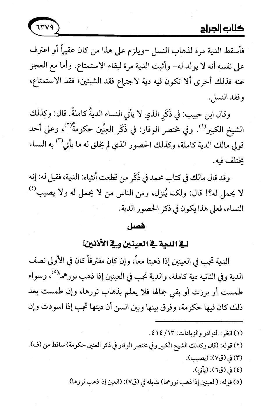 (¬5) قوله: (العينن إذا ذهب نورهما) يقابله في (ق 7): (العين إذا ذهب نورها).