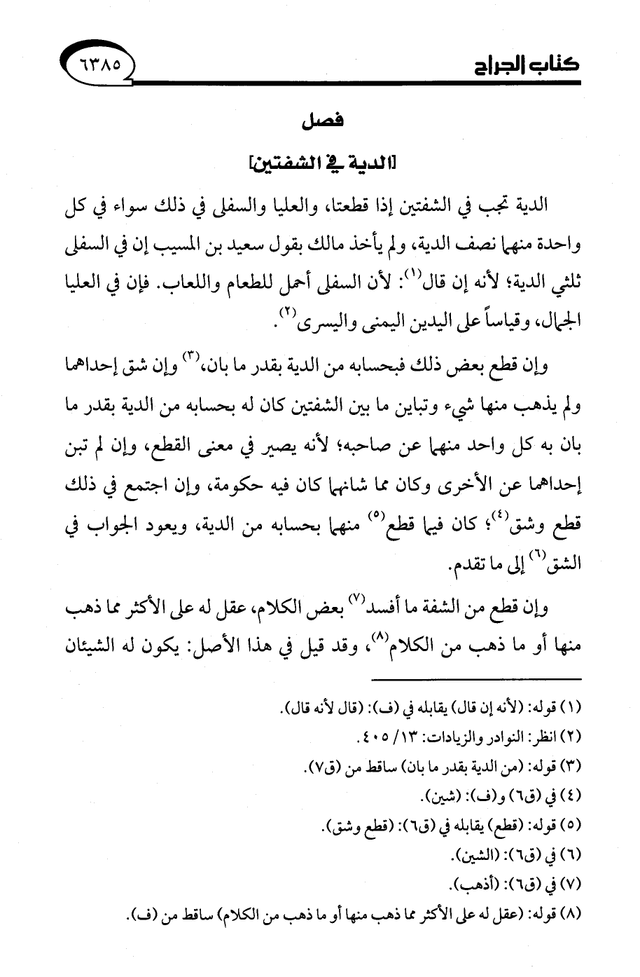 (¬8) قوله: (عقل له على الأكثر مما ذهب منها أو ما ذهب من الكلام) ساقط من (ف).