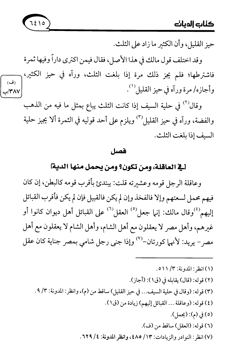(¬7) انظر: النوادر والزيادات: 13/ 485، وانظر المدونة: 4/ 629.