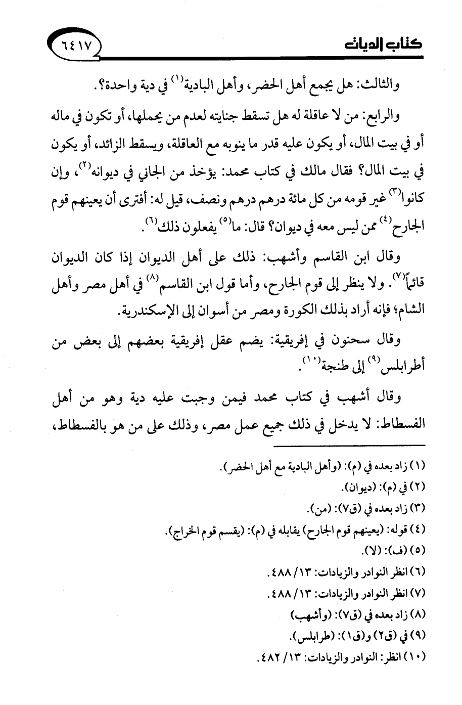 (¬10) انظر: النوادر والزيادات: 13/ 482.
