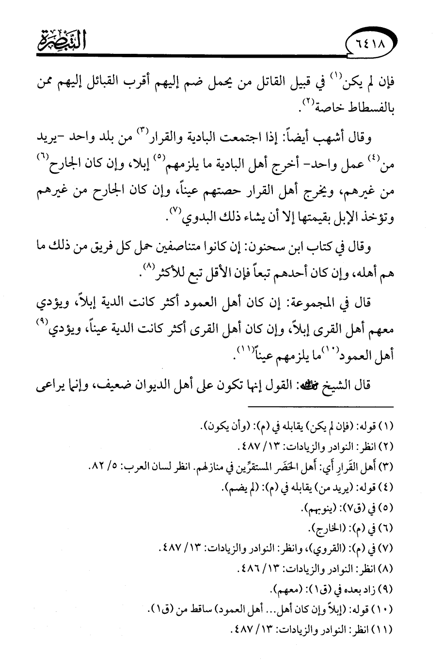(¬11) انظر: النوادر والزيادات: 13/ 487.