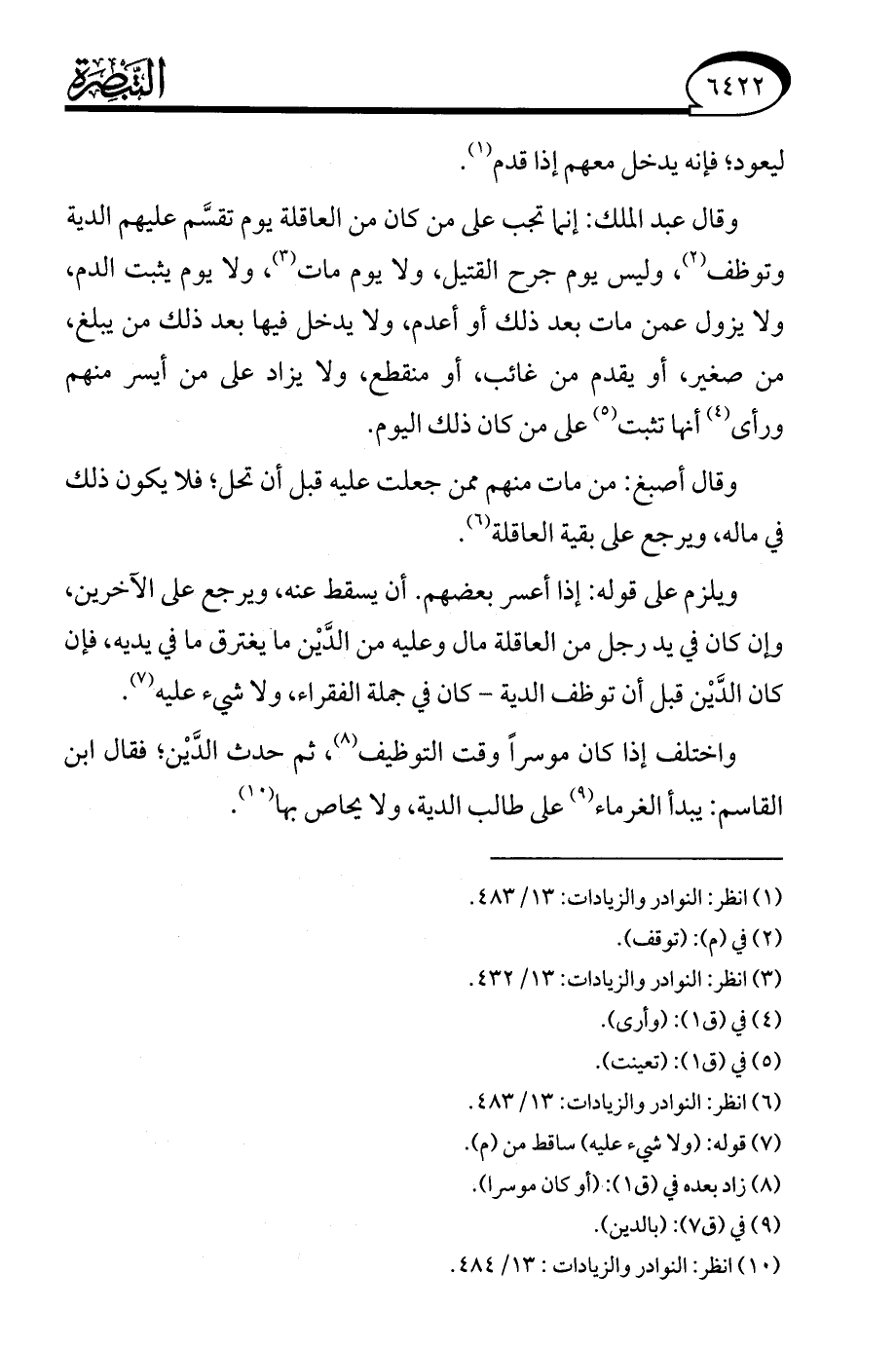 (¬10) انظر: النوادر والزيادات: 13/ 484.