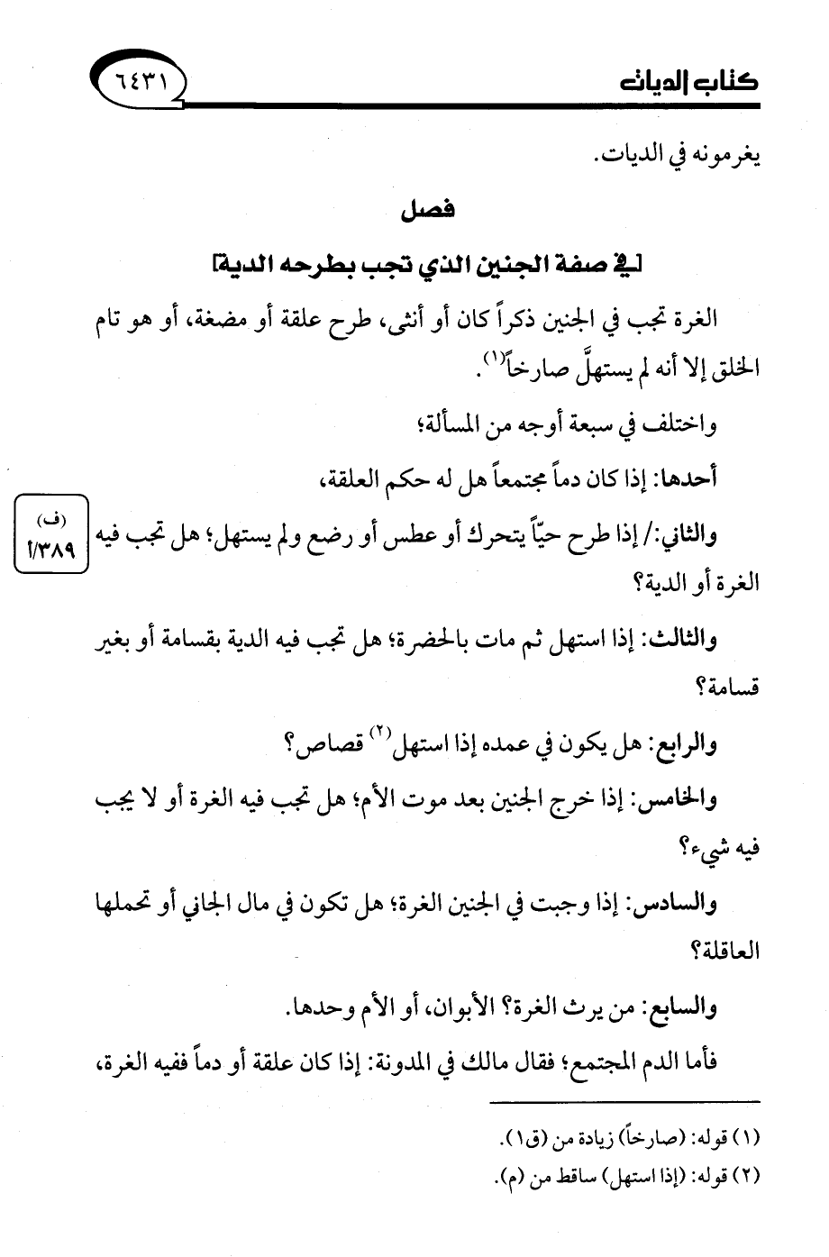 فصل [في صفة الجنين الذي تجب بطرحه الدية]