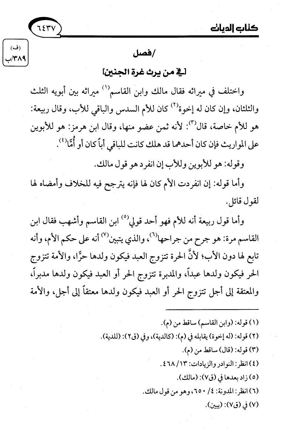 (¬6) انظر: المدونة: 4/ 650، وهو من قول مالك.