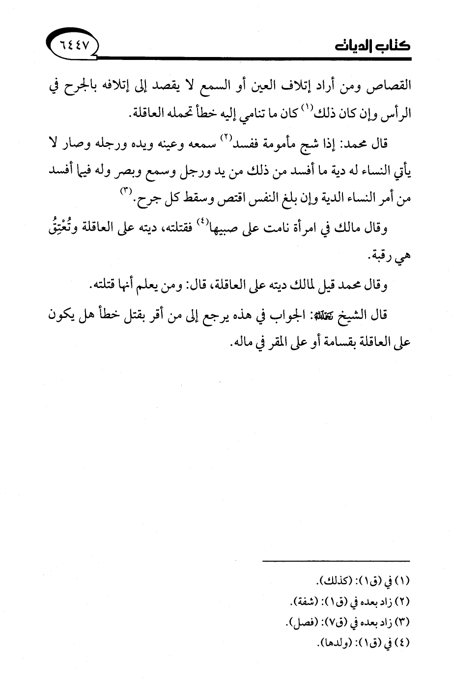 وقال محمد قيل لمالك ديته على العاقلة، قال: ومن يعلم أنها قتلته.