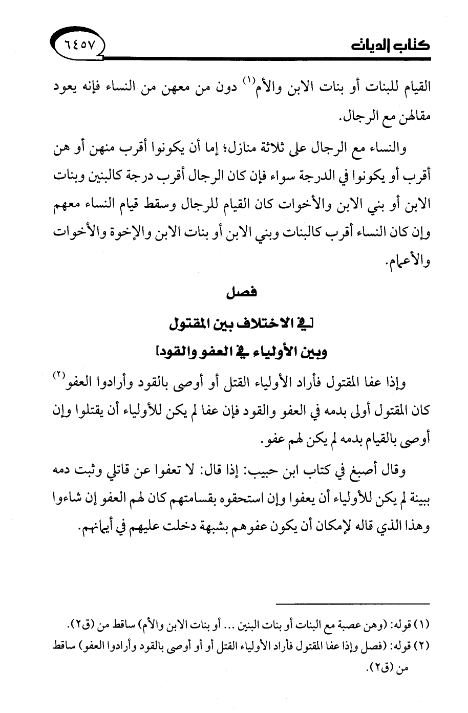 (¬2) قوله: (فصل وإذا عفا المقتول فأراد الأولياء القتل أو أو أوصى بالقود وأرادوا العفو) ساقط من (ق 2).