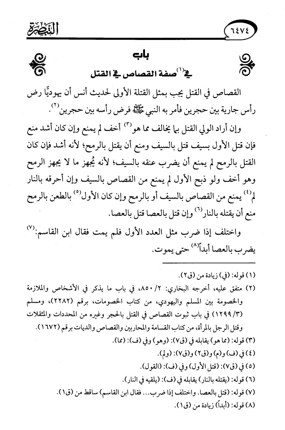 (¬7) قوله: (قتل بالعصا. واختلف إذا ضرب. . . فقال ابن القاسم) ساقط من (ق 1).