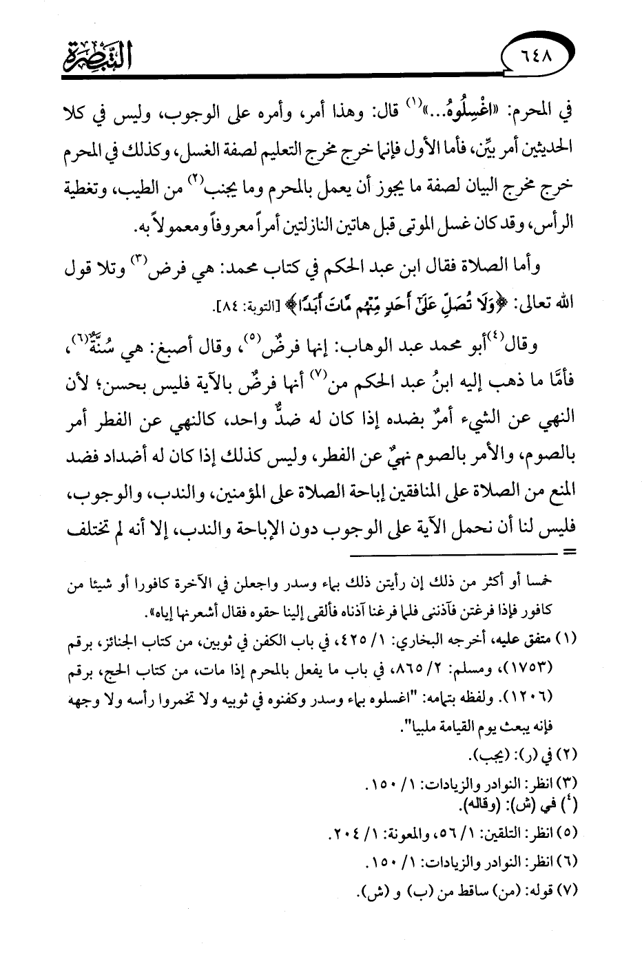 وأما الصلاة فقال ابن عبد الحكم في كتاب محمَّد: هي فرض (¬3) وتلا قول الله تعالى: {وَلَا تُصَلِّ عَلَى أَحَدٍ مِنْهُمْ مَاتَ أَبَدًا} [التوبة: 84].
