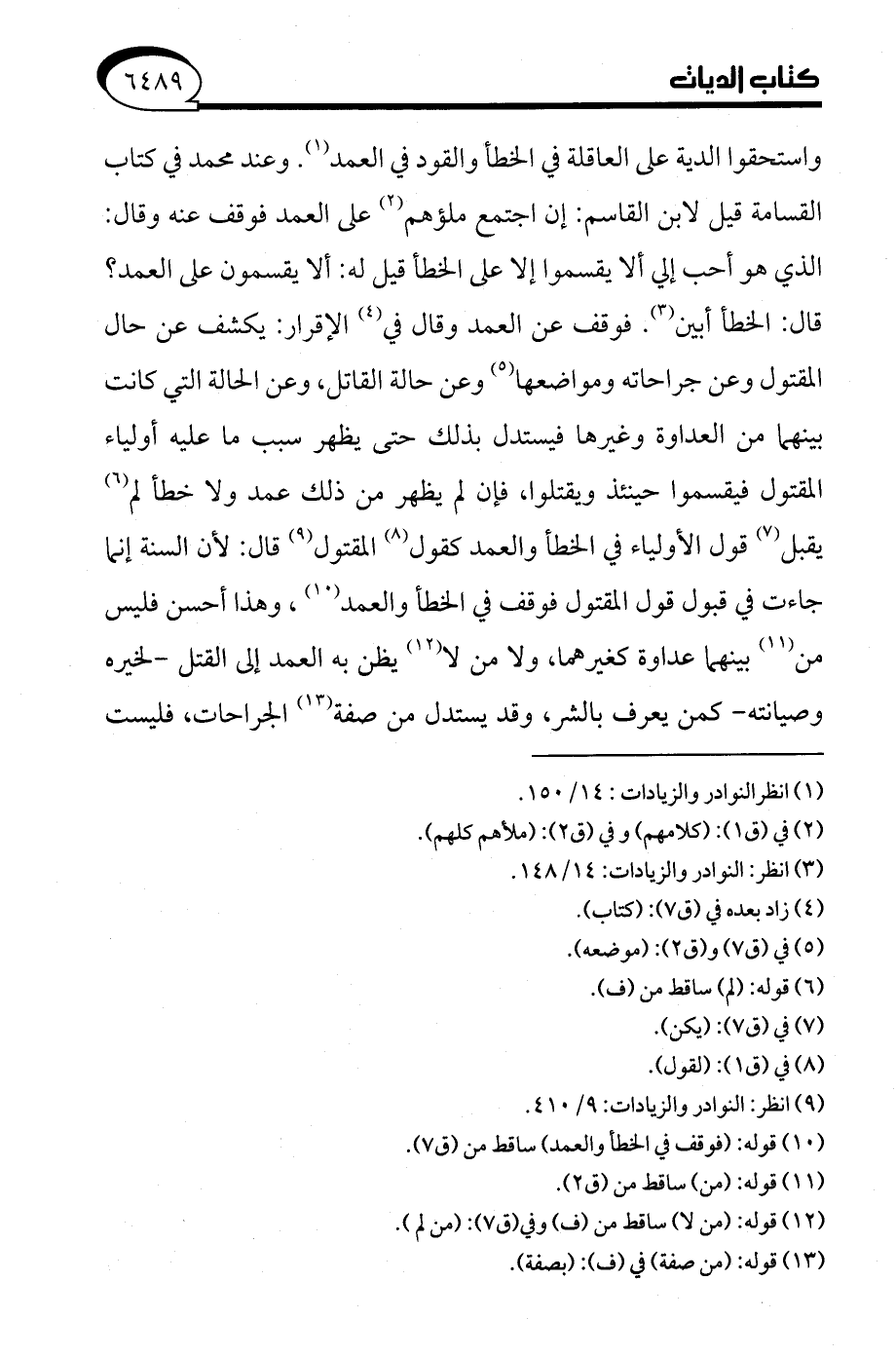 (¬3) انظر: النوادر والزيادات: 14/ 148.