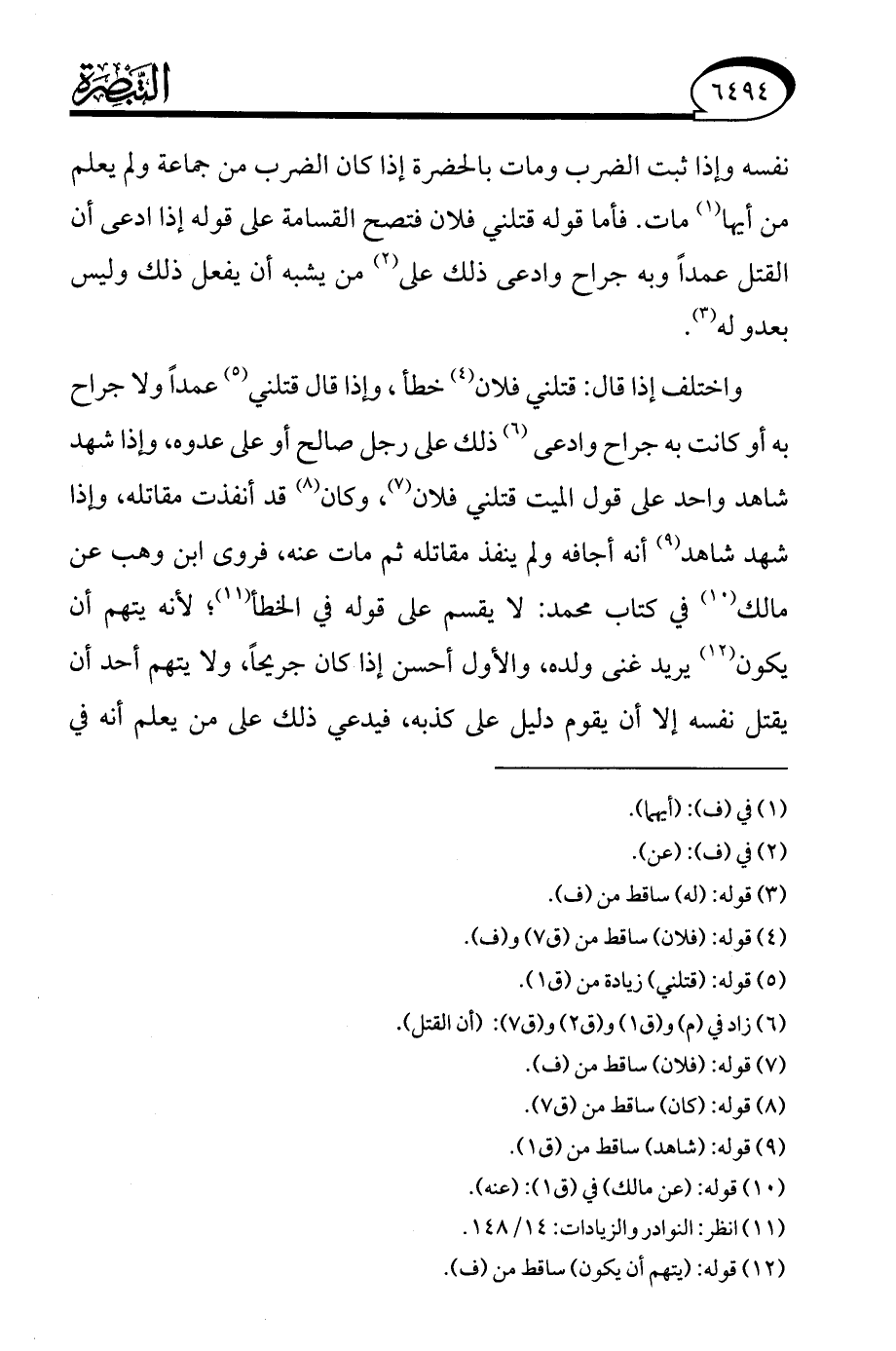 (¬11) انظر: النوادر والزيادات: 14/ 148.