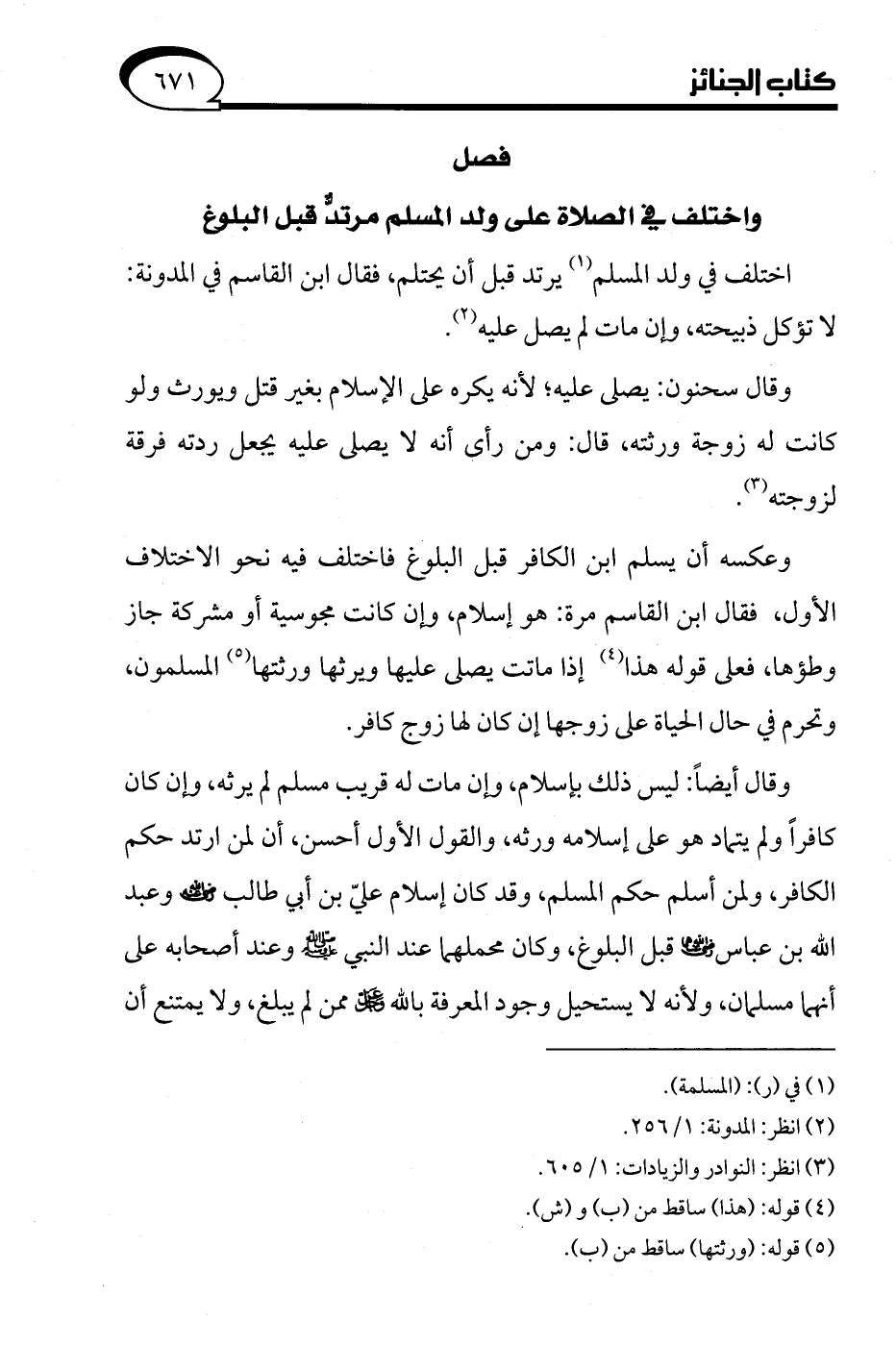 (¬3) انظر: النوادر والزيادات: 1/ 605.