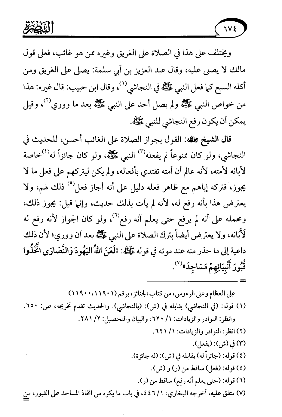 قال الشيخ - رضي الله عنه -: القول بجواز الصلاة على الغائب أحسن، للحديث في النجاشي، ولو كان ممنوعًا لم يفعله (¬3) النبي - صلى الله عليه وسلم -، ولو كان جائزًا له (¬4) خاصة لأبانه لأمته؛ لأنه عالم أن أمته تقتدي بأفعاله، ولم يكن ليتركهم على فعل ما لا يجوز، فتركه إياهم مع ظاهر فعله دليل على أنه أجاز فعل (¬5) ذلك لهم، ولا يعترض هذا بأنه رفع له؛ لأنه لم يأت بذلك حديث، وإنما قيل: يجوز ذلك، ومحمله على أنه لم يرفع حتى يعلم أنه رفع (¬6)، ولو كان الجواز لأنه رفع له لَأَبَانه، ولا يعترض أيضًا بترك الصلاة على النبي - صلى الله عليه وسلم - بعد أن ووري؛ لأن ذلك داعية إلى ما حذر منه عند موته في قوله - صلى الله عليه وسلم -: "لَعَنَ اللهُ اليَهُودَ وَالنَّصَارَى اتَخذُوا قُبُورَ أَنبِيَائِهِمْ مَسَاجِدَ" (¬7).