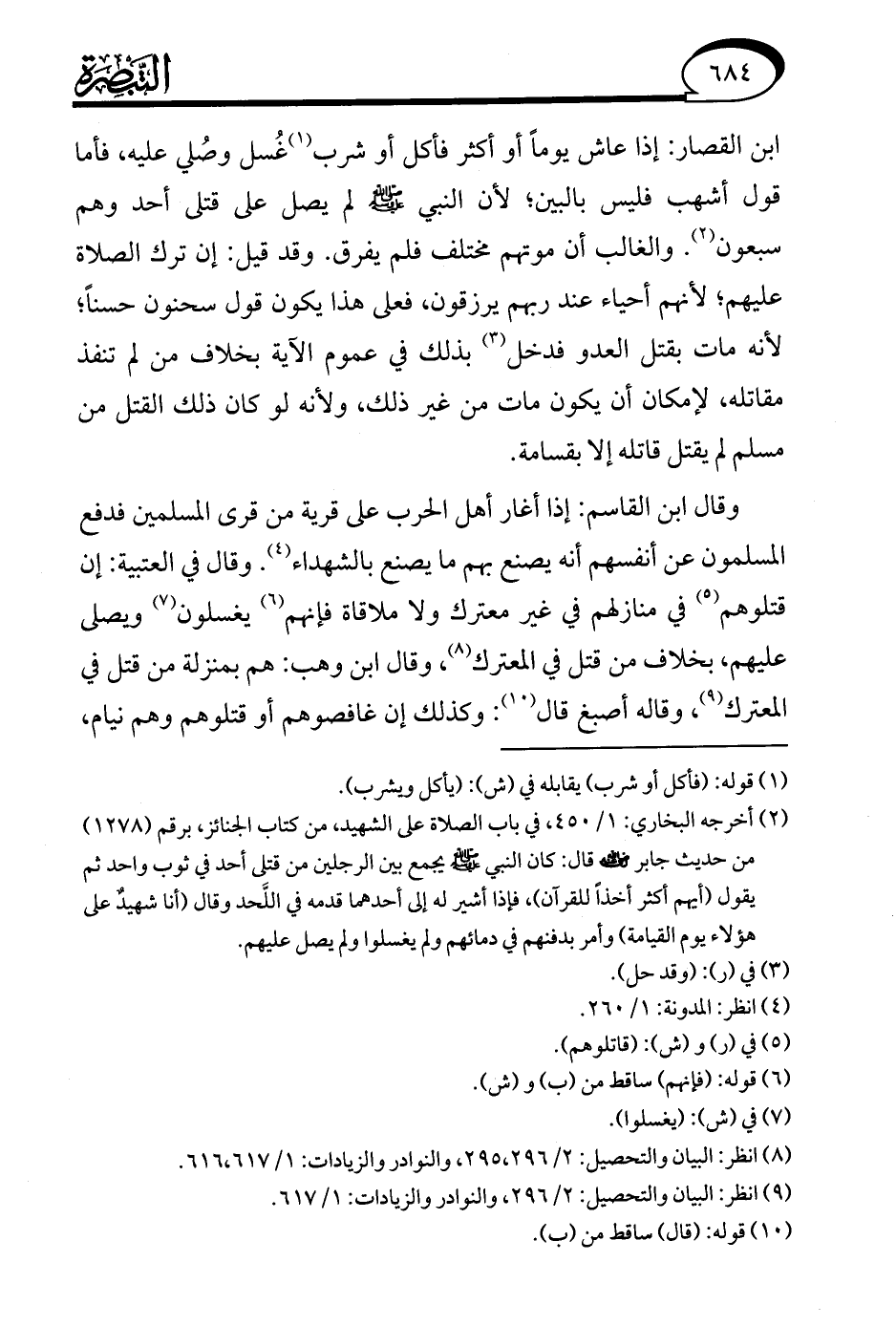 (¬8) انظر: البيان والتحصيل: 2/ 296، 295، والنوادر والزيادات: 1/ 617، 616.
