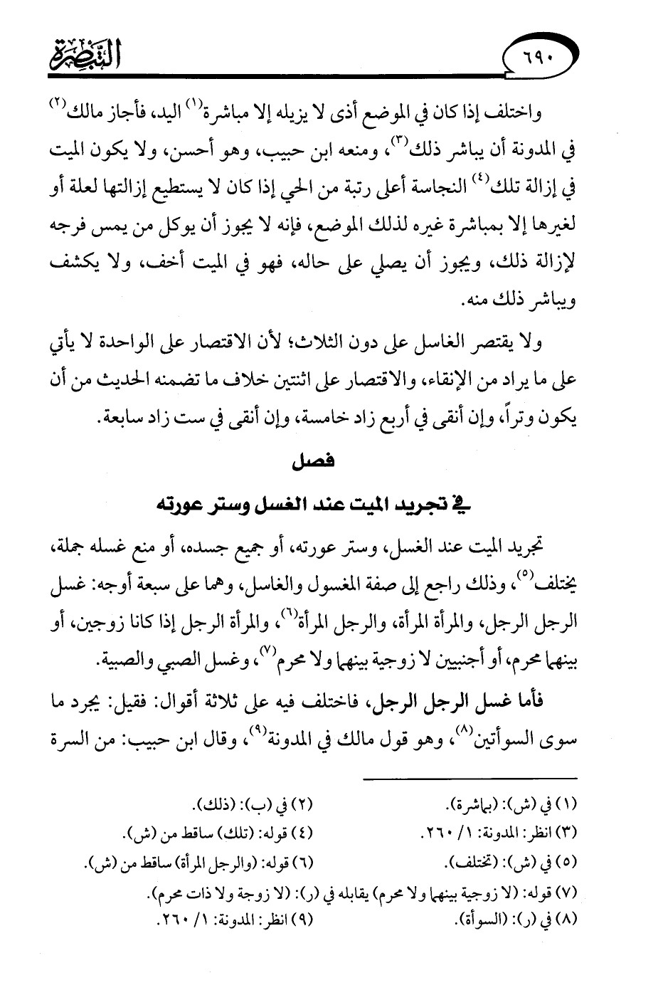 (¬9) انظر: المدونة: 1/ 260.