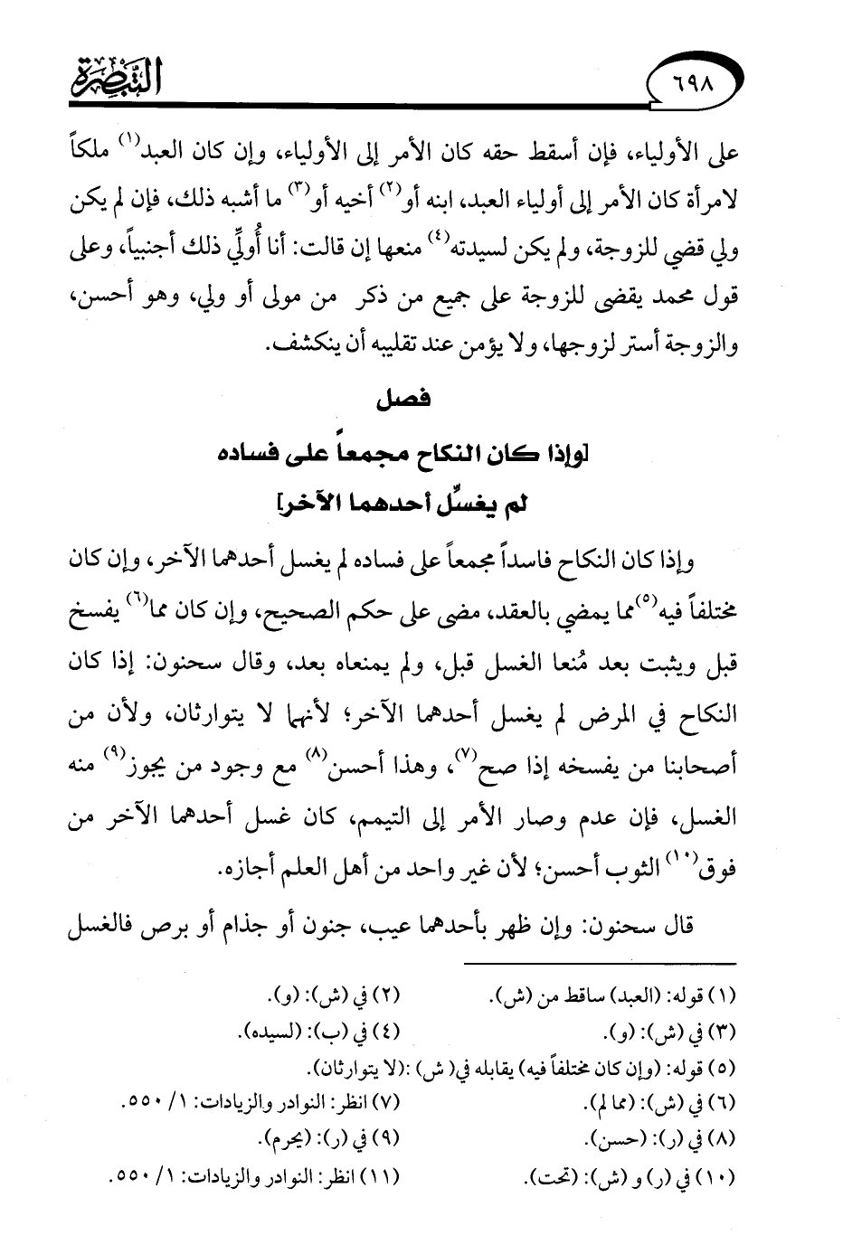 (¬11) انظر: النوادر والزيادات: 1/ 550.