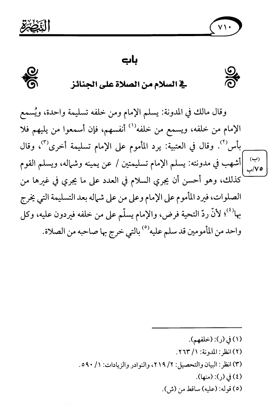 (¬3) انظر: البيان والتحصيل: 2/ 219، والنوادر والزيادات: 1/ 590.