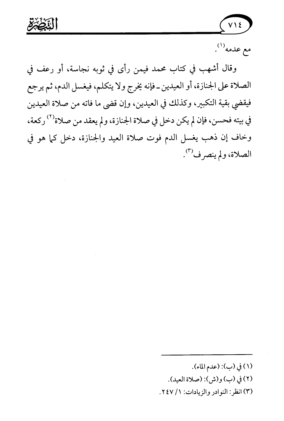 (¬3) انظر: النوادر والزيادات: 1/ 247.