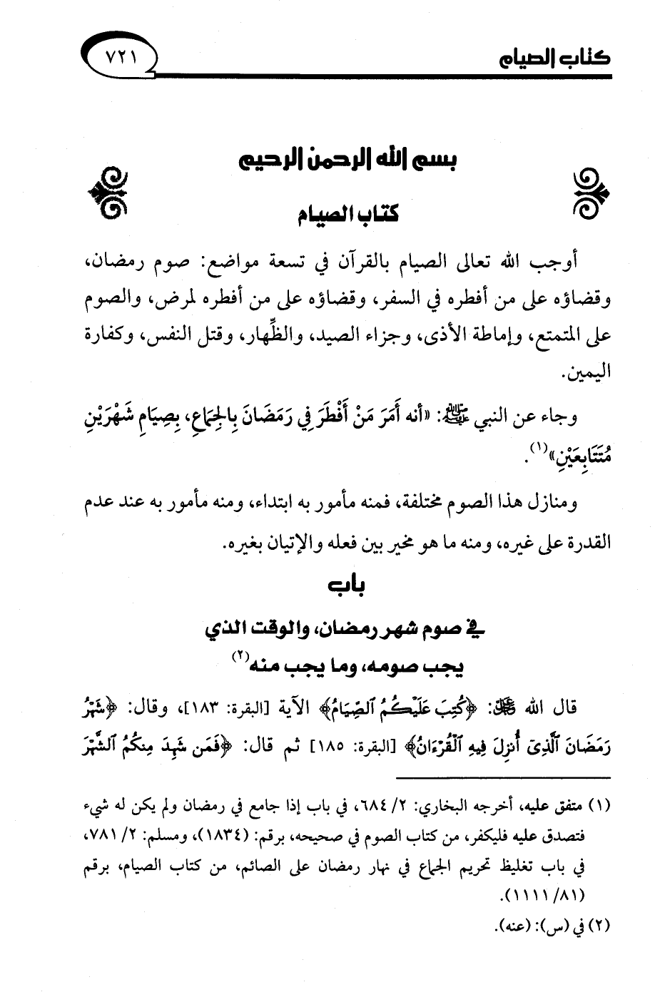 باب في صوم شهر رمضان، والوقت الذي يجب صومه وما يجب منه (¬2)