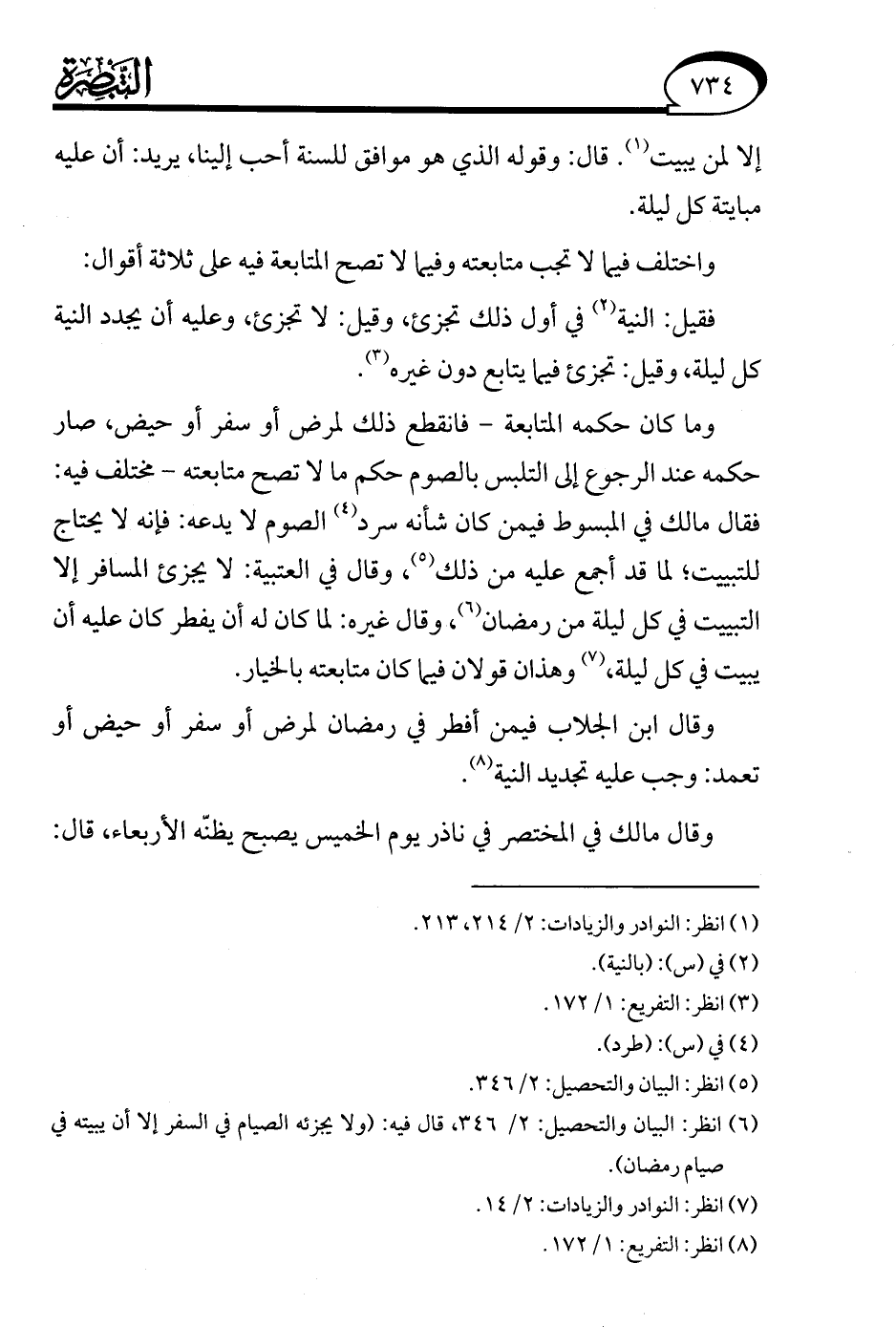 (¬6) انظر: البيان والتحصيل: 2/ 346، قال فيه: (ولا يجزئه الصيام في السفر إلا أن يبيته في صيام رمضان).