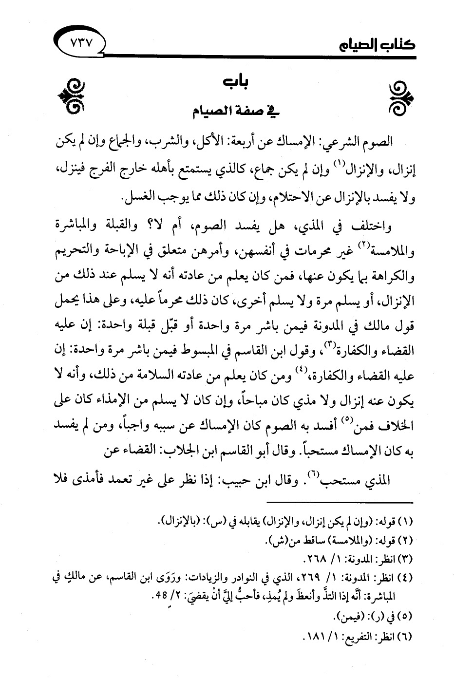 (¬4) انظر: المدونة: 1/ 269، الذي في النوادر والزيادات: ورَوَى ابن القاسم، عن مالكٍ في المباشرة: أَنَّه إذا التذَّ وأنعظَ ولم يُمذِ، فأحبُّ إليَّ أنْ يقضيَ: 2/ 48.