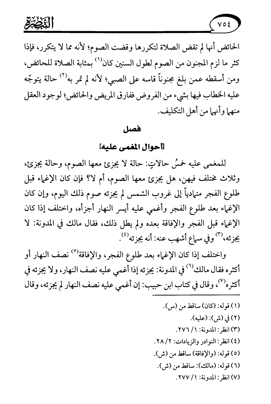 (¬7) انظر: المدونة: 1/ 277.