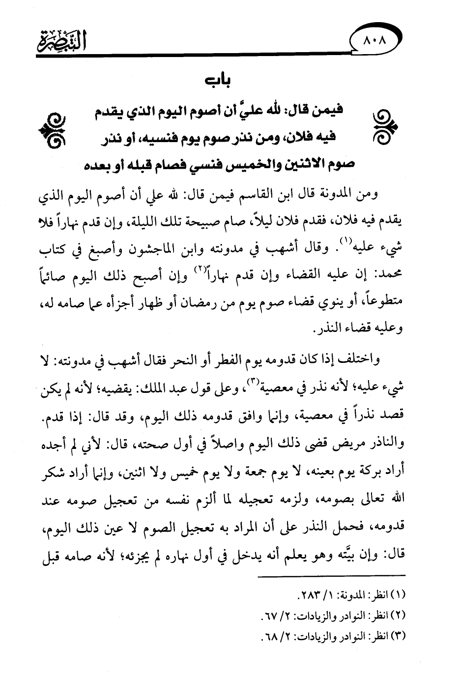 (¬3) انظر: النوادر والزيادات: 2/ 68.
