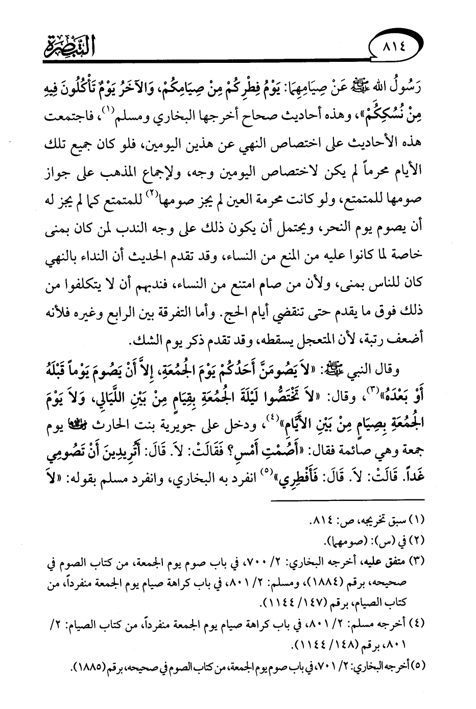 (¬5) أخرجه البخاري: 2/ 701، في باب صوم يوم الجمعة, من كتاب الصوم في صحيحه, برقم (1885).