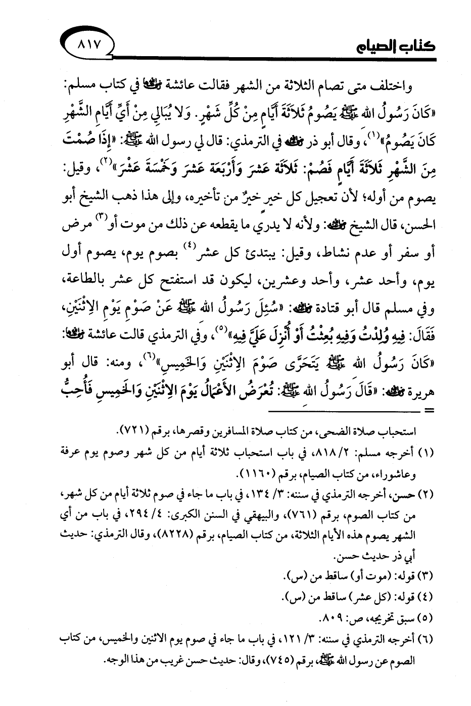 (¬6) أخرجه الترمذي في سننه: 3/ 121، في باب ما جاء في صوم يوم الاثنين والخميس، من كتاب الصوم عن رسول الله - صلى الله عليه وسلم -, برقم (745)، وقال: حديث حسن غريب من هذا الوجه.