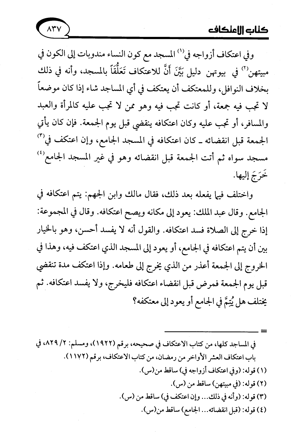 = في المساجد كلها، من كتاب الاعتكاف في صحيحه، برقم (1922)، ومسلم: 2/ 829، في باب اعتكاف العشر الأواخر من رمضان، من كتاب الاعتكاف، برقم (1172).