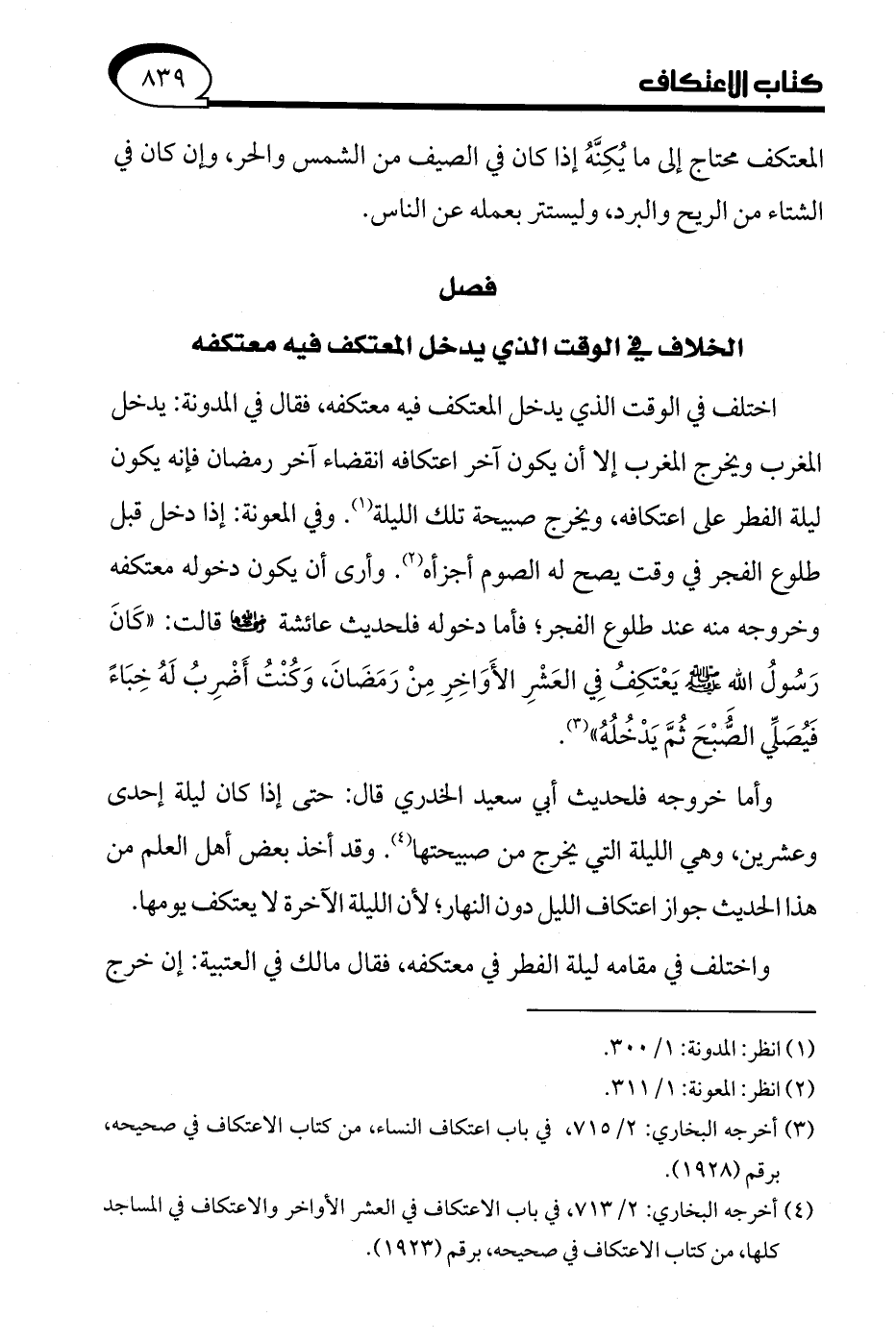 (¬4) أخرجه البخاري: 2/ 713، في باب الاعتكاف في العشر الأواخر والاعتكاف في المساجد كلها، من كتاب الاعتكاف في صحيحه، برقم (1923).