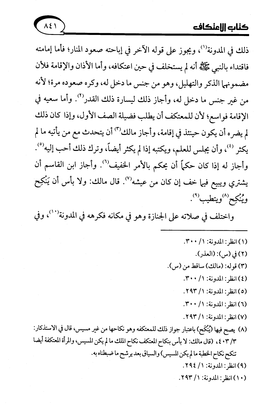 (¬10) انظر: المدونة: 1/ 293.