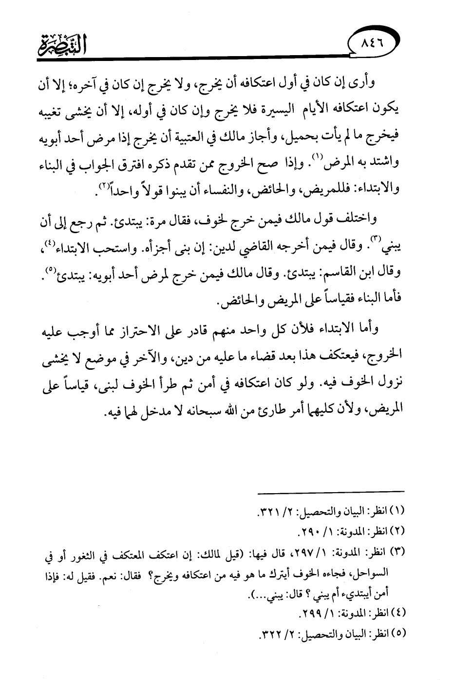 (¬5) انظر: البيان والتحصيل: 2/ 322.