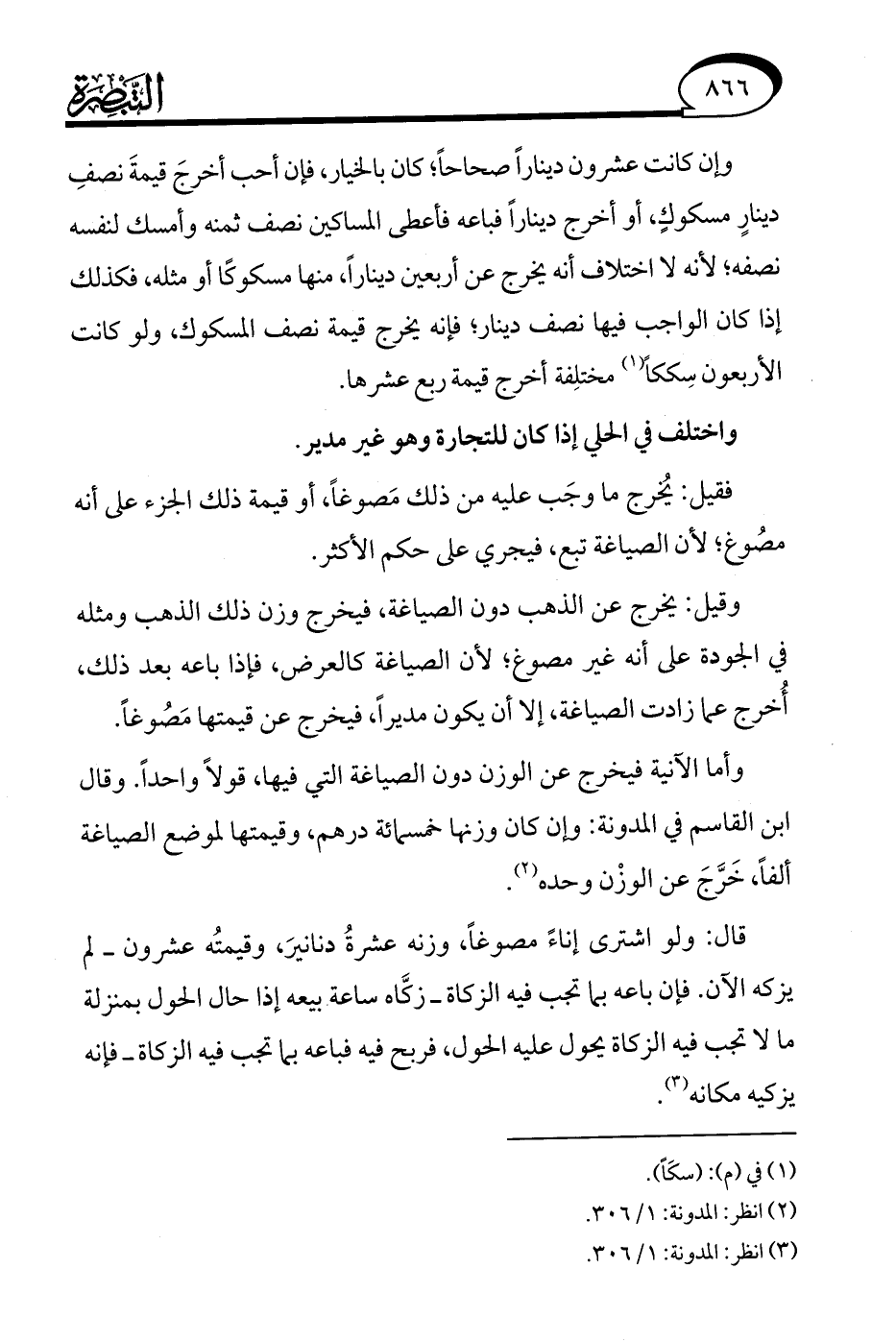 (¬3) انظر: المدونة: 1/ 306.