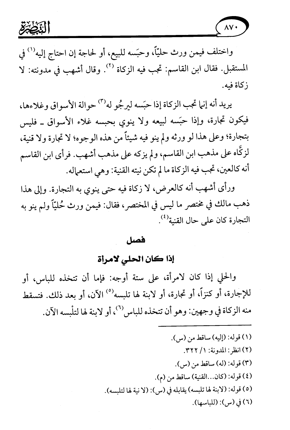 ورأى أشهب أنه كالعرض، لا زكاة فيه حتى ينوي به التجارة. وإلى هذا ذهب مالك في مختصر ما ليس في المختصر، فقال: فيمن ورث حُليًّا ولم ينو به التجارة كان على حال القنية (¬4).