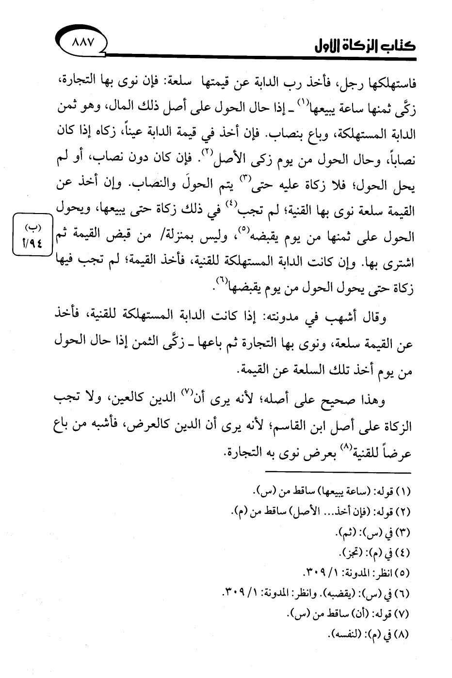 (¬5) انظر: المدونة: 1/ 309.