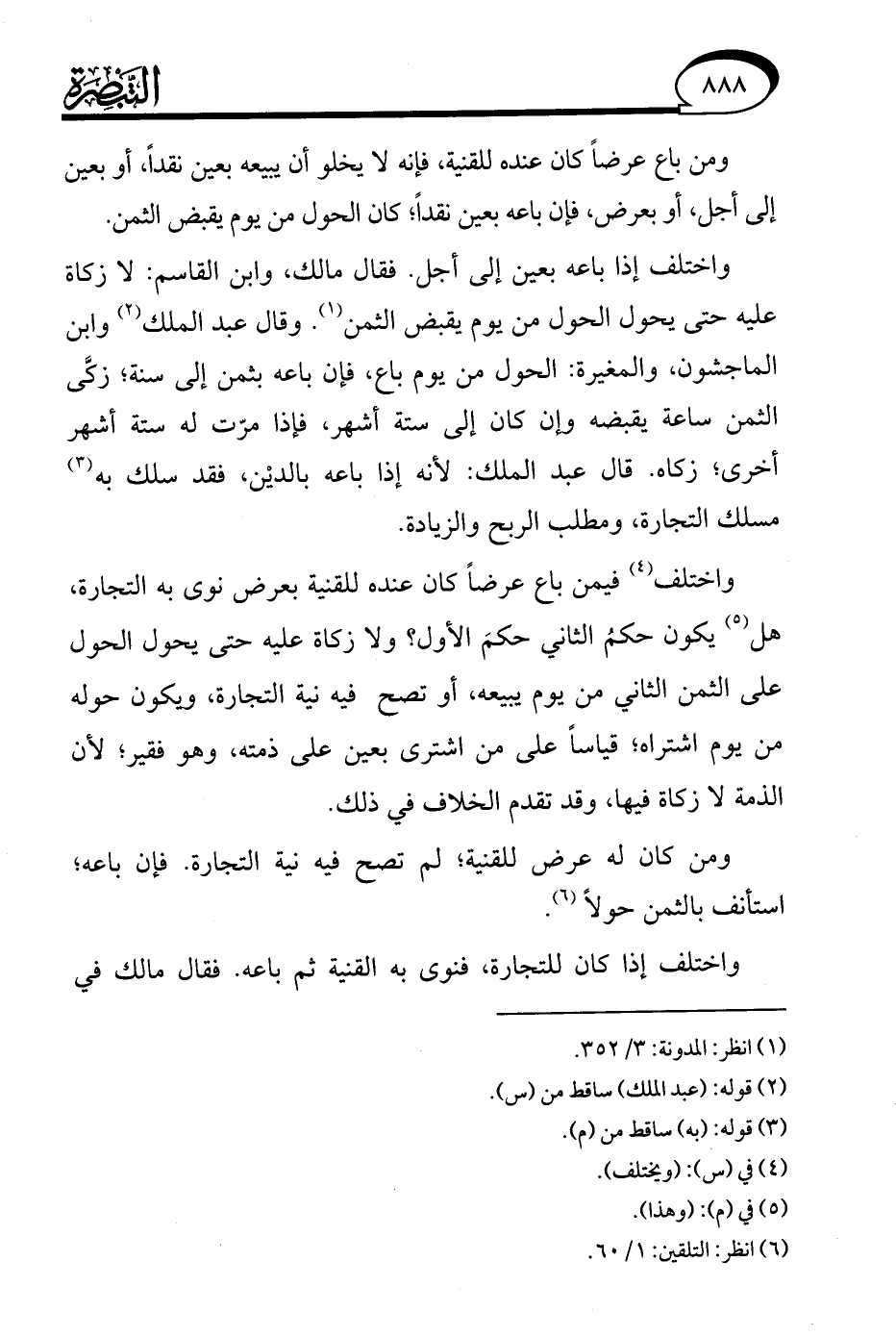 واختلف إذا باعه بعين إلى أجل. فقال مالك، وابن القاسم: لا زكاة عليه حتى يحول الحول من يوم يقبض الثمن (¬1). وقال عبد الملك (¬2) وابن الماجشون، والمغيرة: الحول من يوم باع، فإن باعه بثمن إلى سنة؛ زكَّى الثمن ساعة يقبضه وإن كان إلى ستة أشهر، فإذا مرّت له ستة أشهر أخرى؛ زكاه. قال عبد الملك: لأنه إذا باعه بالديْن، فقد سلك به (¬3) مسلك التجارة، ومطلب الربح والزيادة.