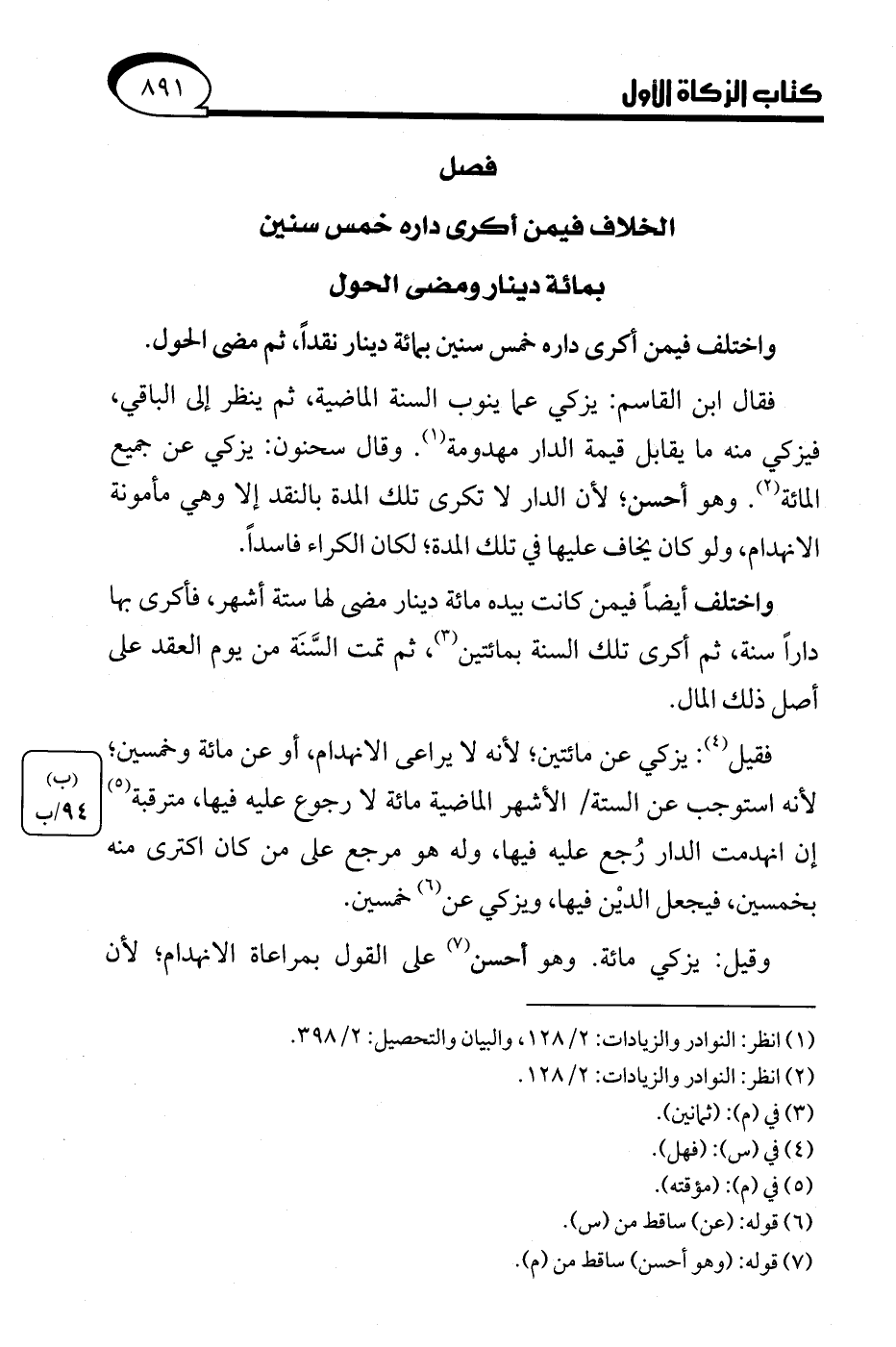 (¬1) انظر: النوادر والزيادات: 2/ 128، والبيان والتحصيل: 2/ 398.
