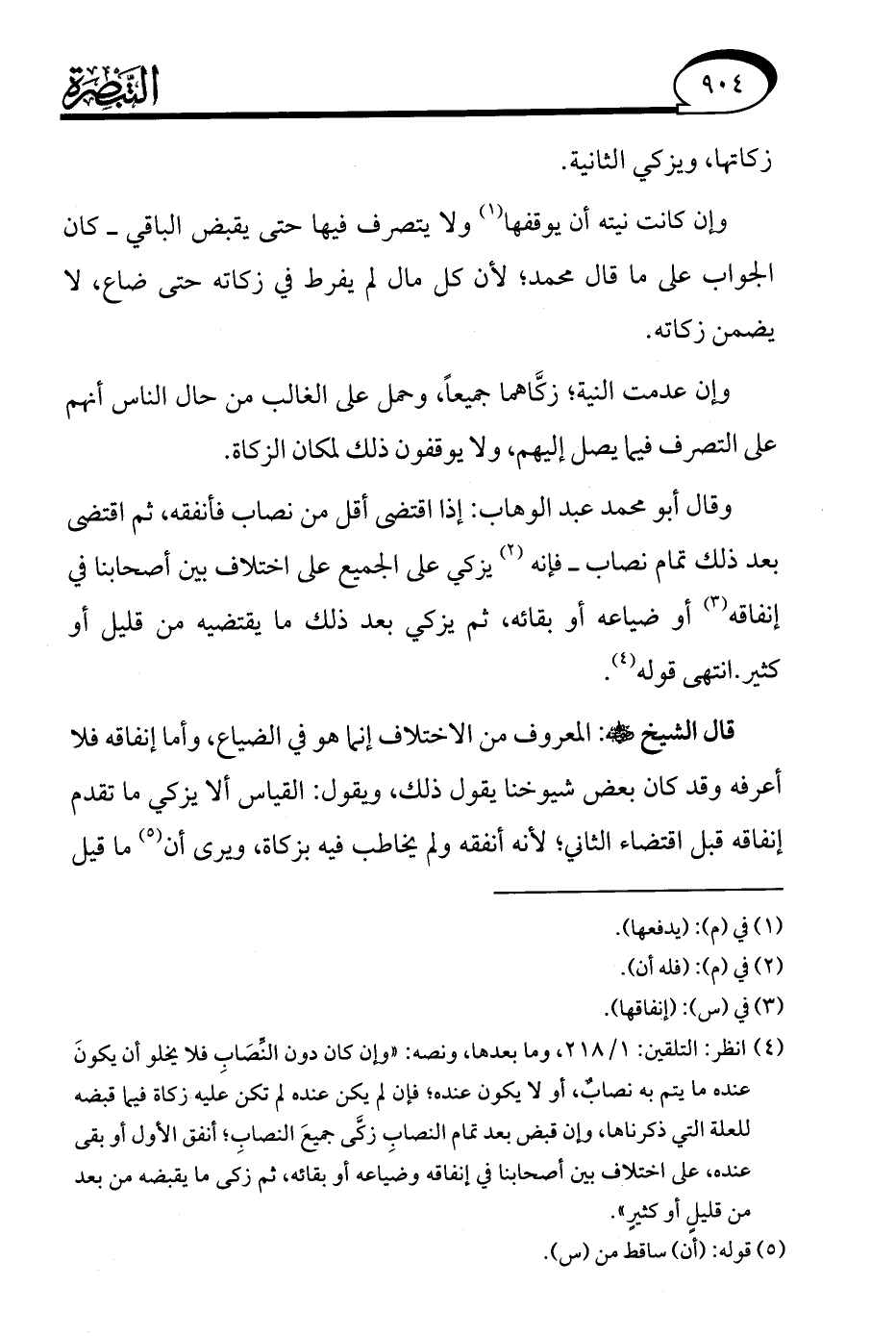 (¬4) انظر: التلقين: 1/ 218، وما بعدها، ونصه: "وإن كان دون النِّصَابِ فلا يخلو أن يكونَ عنده ما يتم به نصابٌ، أو لا يكون عنده؛ فإن لم يكن عنده لم تكن عليه زكاة فيما قبضه للعلة التي ذكرناها، وإن قبض بعد تمام النصابِ زكَّى جميعَ النصابِ؛ أنفق الأول أو بقى عنده، على اختلاف بين أصحابنا في إنفاقه وضياعه أو بقائه، ثم زكى ما يقبضه من بعد من قليلٍ أو كثيرٍ".