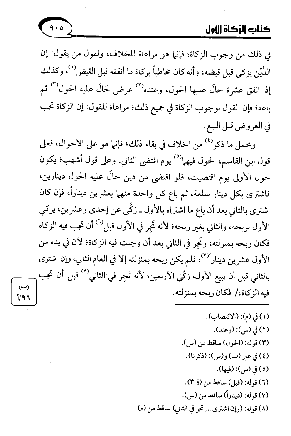 ومحمل ما ذكر (¬4) من الخلاف في بقاء ذلك؛ فإنما هو على الأحوال، فعلى قول ابن القاسم، الحول فيهما (¬5) يوم اقتضي الثاني. وعلى قول أشهب؛ يكون حول الأولى يوم اقتضيت، فلو اقتضى من دين حالَ عليه الحول دينارين، فاشترى بكل دينار سلعة، ثم باع كل واحدة منهما بعشرين دينارًا، فإن كان اشترى بالثاني بعد أن باع ما اشتراه بالأول- زكَّى عن إحدى وعشرين، يزكي الأول بربحه، والثاني بغير ربحه؛ لأنه تَجِر في الأول قبل (¬6) أن تجب فيه الزكاة فكان ربحه بمنزلته، وتَجِر في الثاني بعد أن وجبت فيه الزكاة؛ لأن في يده من الأول عشرين دينارًا (¬7)، فلم يكن ربحه بمنزلته إلا في العام الثاني، وإن اشترى بالثاني قبل أن يبيع الأول، زكَّى الأربعين؛ لأنه تَجِر في الثاني (¬8) قبل أن تجب فيه الزكاة، فكان ربحه بمنزلته.