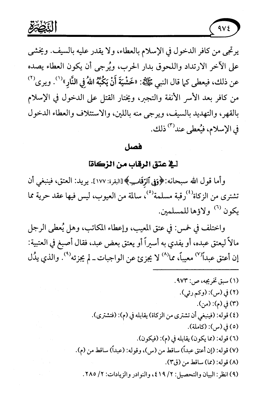 (¬9) انظر: البيان والتحصيل: 2/ 419، والنوادر والزيادات: 2/ 285.