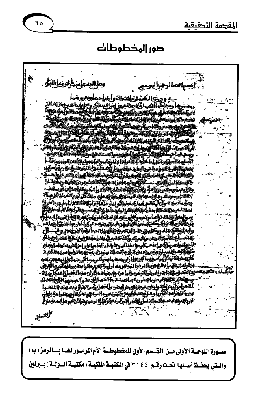 صورة اللوحة الأولى منا القسم الأول للمخطوطة الأم المرموز لها بالرمز (ب)