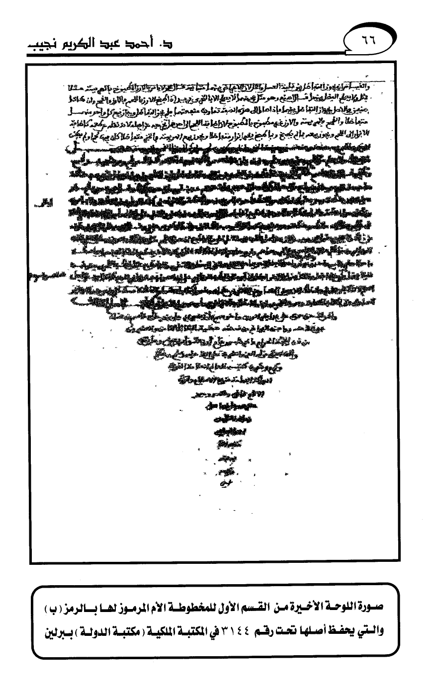 صورة اللوحة الأخيرة من القسم الأول للمخطوطة الأم المرموز لها بالرمز (ب)