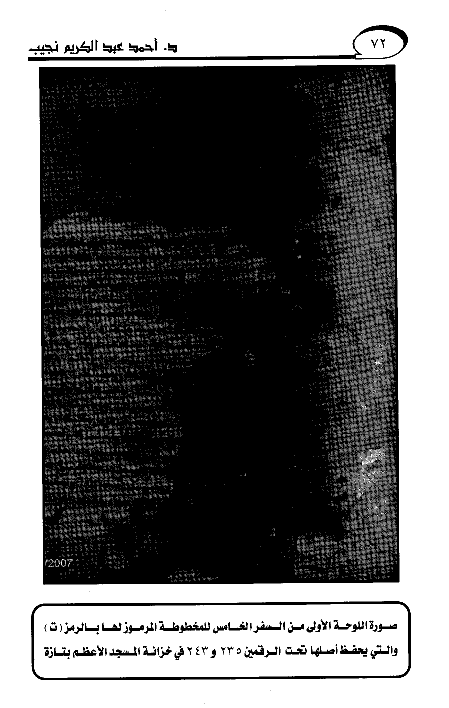 صورة اللوحة الأولى من السفر الخامس للمخطوطة المرموز لها بالرمز (ت)